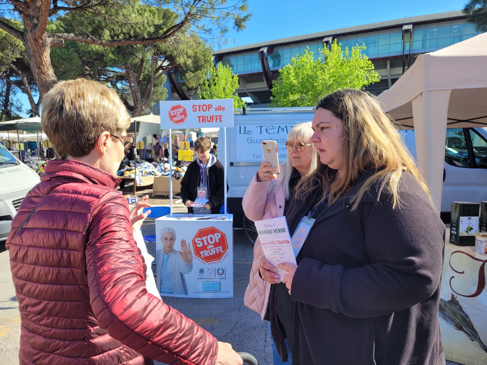Sono state allestite anche postazioni nei mercati rionali (orario 9 – 12) per distribuire materiale informativo alla cittadinanza e incontrare di persona gli over 65 per recepire segnalazioni e necessità. I banchetti, personalizzati con la grafica della campagna “Stop alle truffe”, si possono trovare il lunedì al mercato di via Pepe, il martedì al mercato di Zanni (via Carlo Alberto Dalla Chiesa) o di S. Donato (via Rio Sparto), il mercoledì al mercato sulla Strada parco (zona davanti al Bingo), il giovedì al mercato dei Gesuiti (via Maestri del Lavoro), il venerdì al mercato dei Colli (Largo Madonna dei Sette Dolori). Nelle postazioni, oltre agli operatori dell’Associazione “Domenico Allegrino”, saranno presenti le “Sentinelle di quartiere” (percettori di Adi/Sfl assegnati ai Puc) che diffonderanno guide antitruffa anche nei quartieri.