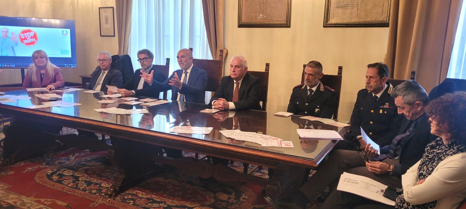 Il progetto, denominato “Stop alle truffe”, prevede varie azioni ideate per informare e supportare gli anziani, i familiari che li assistono, gli amministratori di condominio e l’intera cittadinanza. Attraverso la campagna di prevenzione, giunta alla terza edizione, l’amministrazione comunale, con i fondi messi a disposizione dal Ministero dell’Interno, intende contrastare un fenomeno rilevante, che colpisce sempre più di frequente anziani fragili e soli. Le attività in programma sono state presentate stamani, in Sala Giunta, dal Prefetto Flavio Ferdani, dal Sindaco Carlo Masci, dal Vicesindaco Adelchi Sulpizio, dal Comandante della Polizia Municipale Danilo Palestini e da Antonella Allegrino, fondatrice dell’associazione “Domenico Allegrino” odv. Presenti anche il vice dirigente della Squadra Volante della Questura Domenico Pantalone, il presidente della sezione provinciale dell’ Associazione nazionale Amministratori Condominiali e Immobiliari Marco Pierotti, il dirigente Settore Politiche per il cittadino Marco Molisani, la responsabile del Servizio Gestione delle Politiche sociali Piera Antonioli, l’assistente sociale Simona Proietto, il coordinatore dei PUC (Progetti utili alla collettività) Pierluigi Romagnoli, le Sentinelle di Quartiere e una rappresentanza degli operatori e degli iscritti dei quattro centri di aggregazione per la longevità attiva.